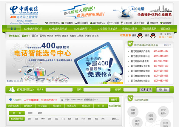 • 中國電信400網上營業廳